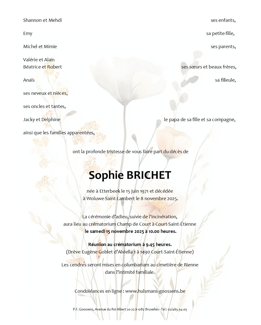 - In memoriam, Sophie BRICHET-Tu n’es plus là où tu étais, mais tu es partout là où je suis.